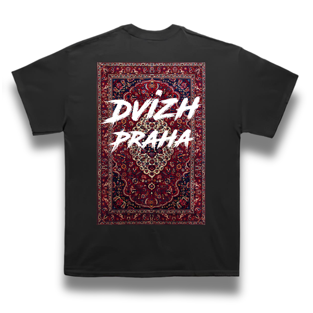 - на груди - оригинальный логотип, на спине - принт с изображением ковра, вызывающий ассоциации с домашним.