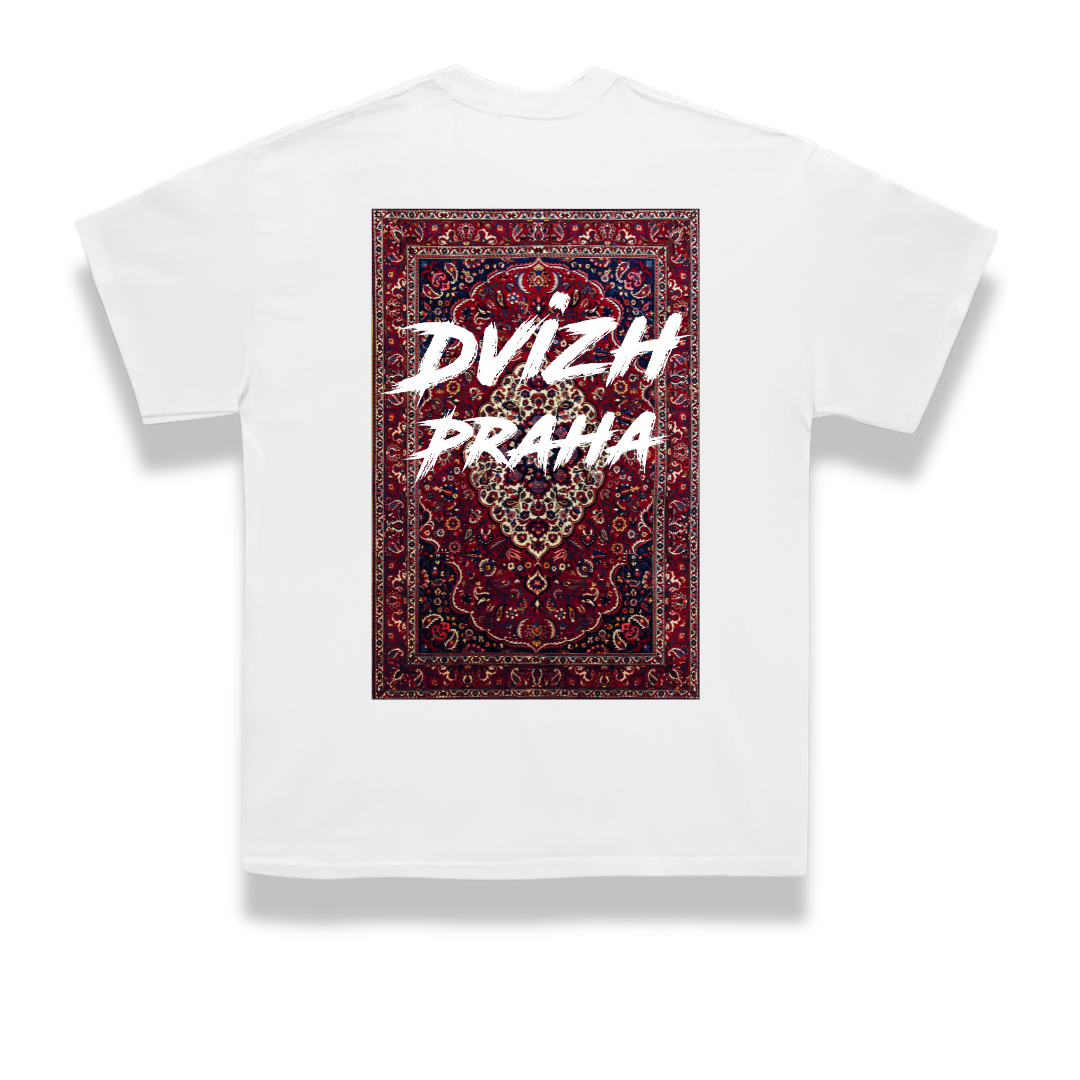 - на груди - оригинальный логотип, на спине - принт с изображением ковра, вызывающий ассоциации с домашним.